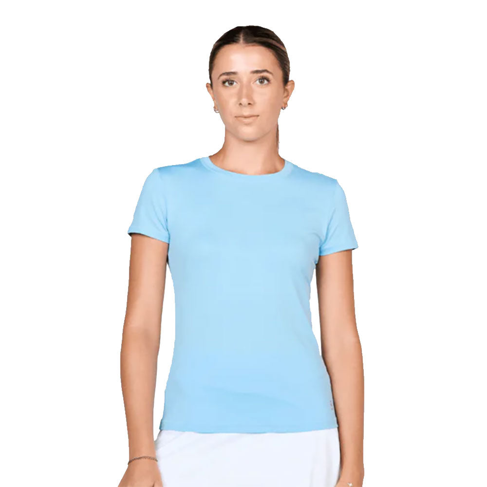 Add some color to your tennis outfit with The Sofibella UV Cap Sleeve Womens Shirt. This fabric comes with UPF 50 sun protection and will feel cool against the skin. This top also has a crew neck and features a heat transfer logo at the bottom left hem.