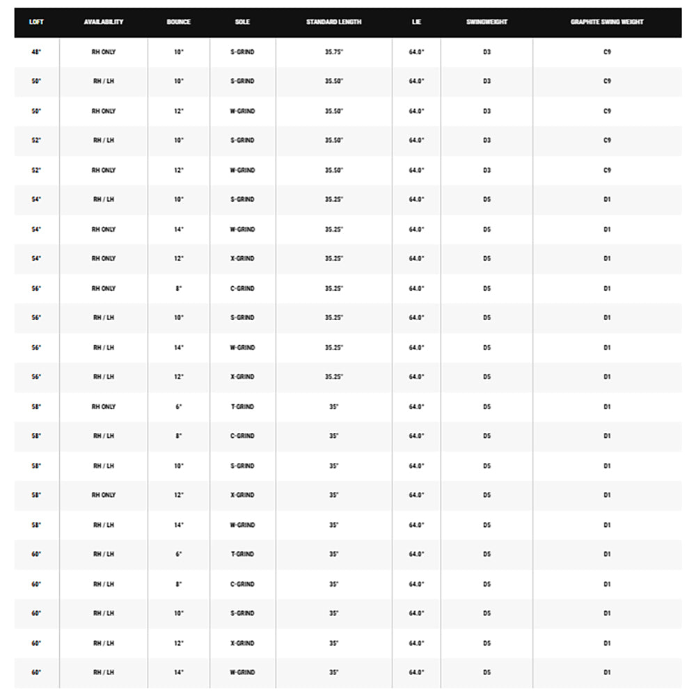 - W Grind: Deep Divot, 14 Degree Bounce, For Players who need the most Help and Forgiveness